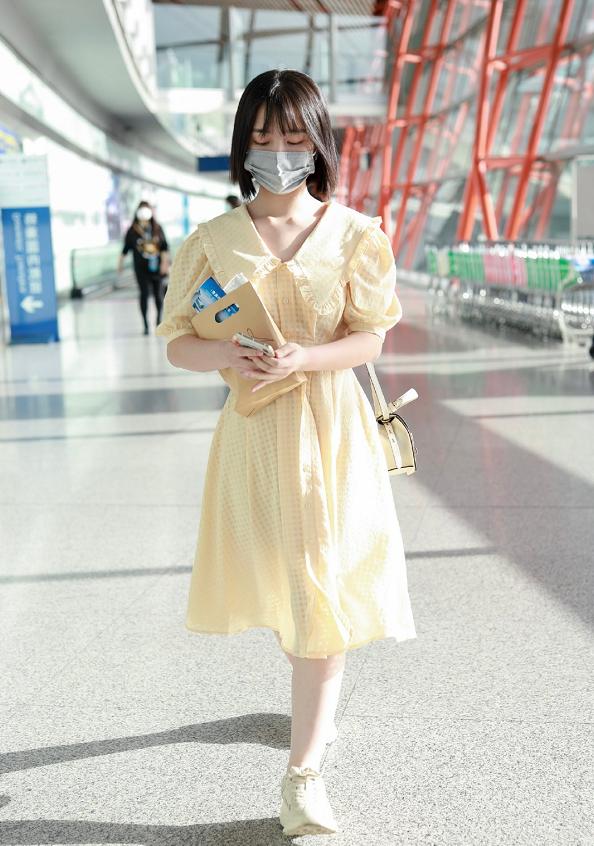 淡黄色的长裙也是夏天必备的穿搭单品了,选择了淡黄色这样的色系与小个子元素结合在一起,就凸显出造型的小清新魅力,难掩她内心的少女感气息。而娃娃领的设计也是不少少女都很喜欢的,会使得造型更加甜美气质,凸显出邓恩熙的优雅小女生魅力,搭配上嫩黄色的单肩包后,她的造型就充满青春气息了,看上去简直不要太清爽干净。即便是穿上平底鞋,但是邓恩熙的真实腿型依旧暴露无遗。